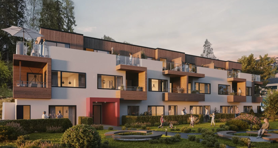 Nybygg bolig felt med næringsdel. Total rørentreprise sanitær, varme og sprinkler.